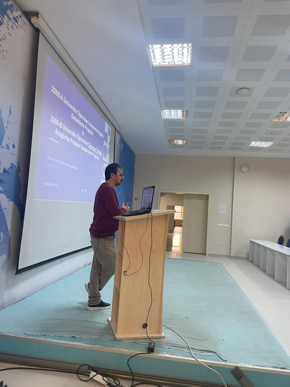 23.10.2025 tarihinde Mimar Sinan (Sayısal) Derslik Konferans Salonu'nda gerçekleştirilen ve 67 kişinin katılım sağladığı etkinlikte, PTO TÜBİTAK Projeleri Sorumlusu Dr. Öğretim Üyesi Mustafa Erkartal tarafından TÜBİTAK 2209-A ve B lisans öğrencileri projeleri 2025 dönemi birinci başvuru çağrısı kapsamında bilgilendirme yapıldı.